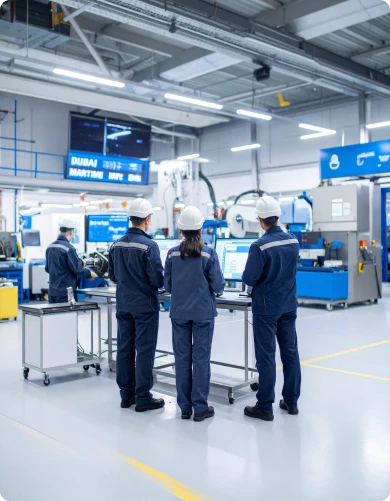 Located at Dubai Maritime City, equipped for complete overhauls. From thrusters to gearboxes — all services under one roof.